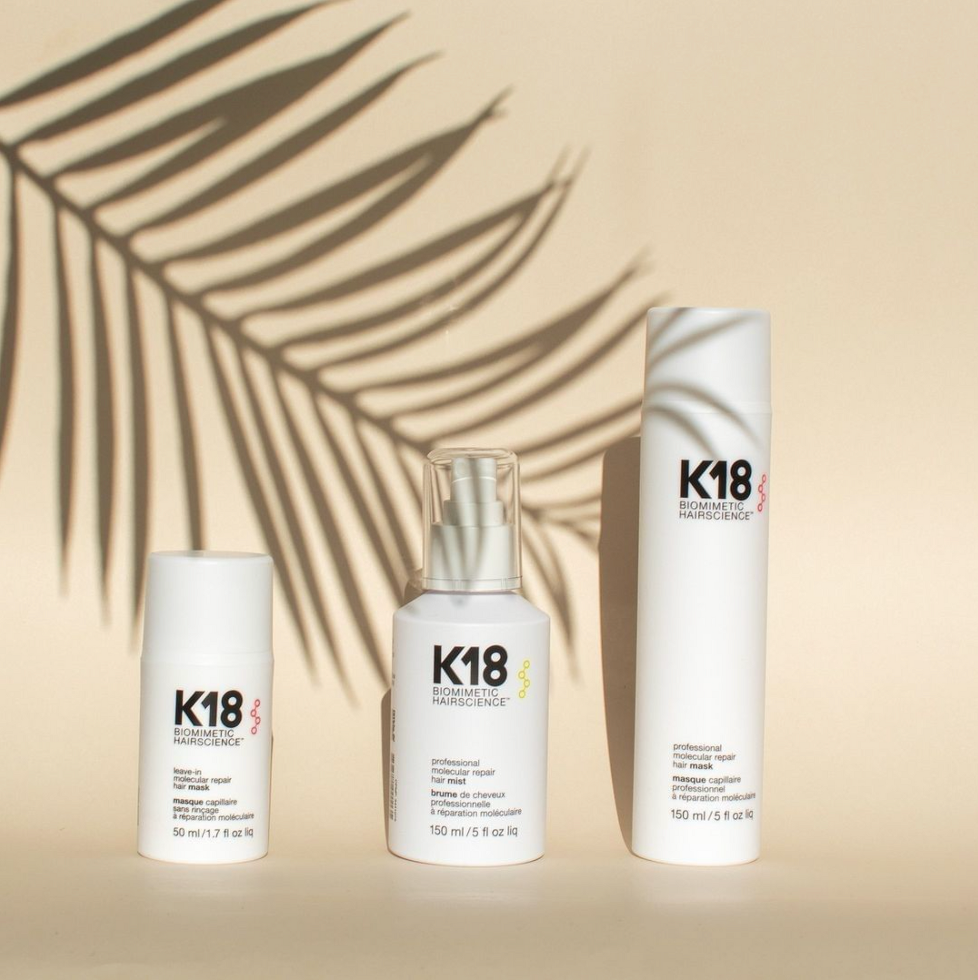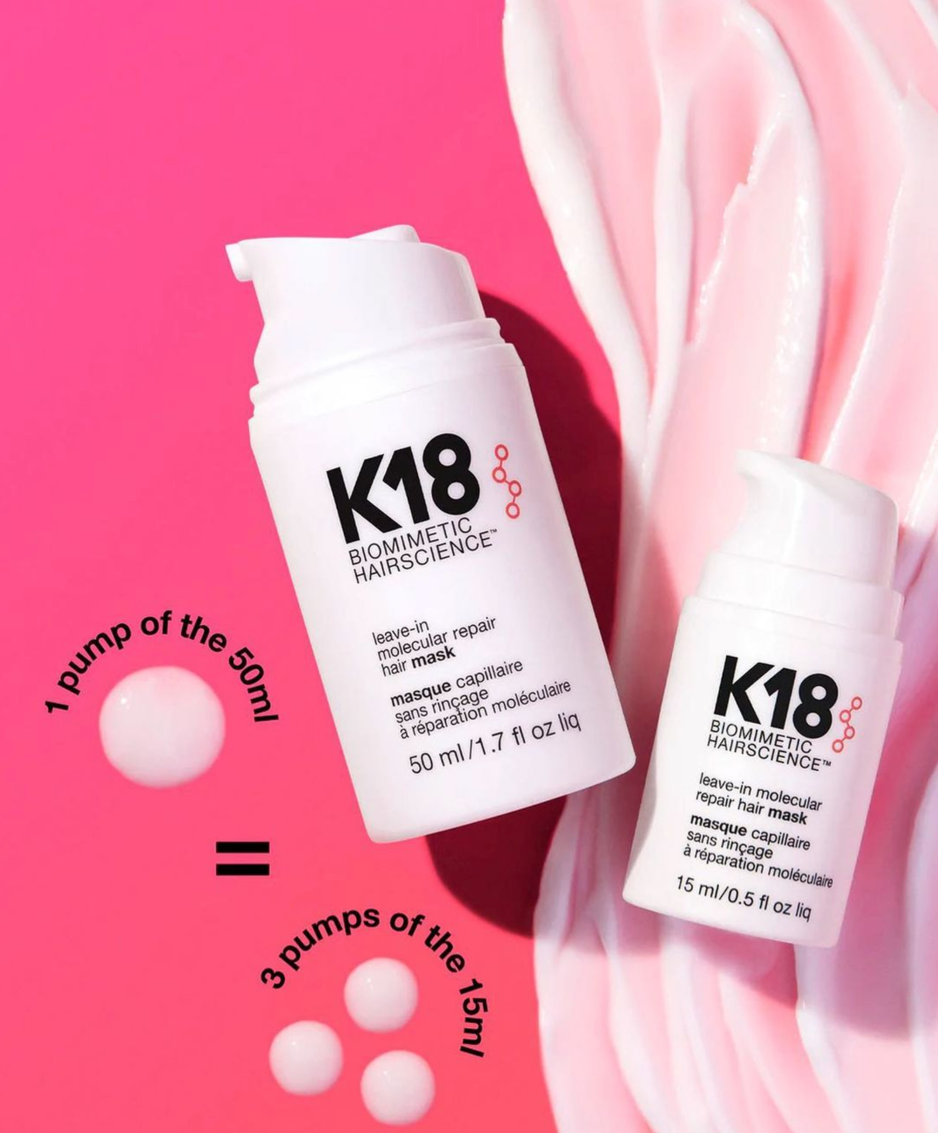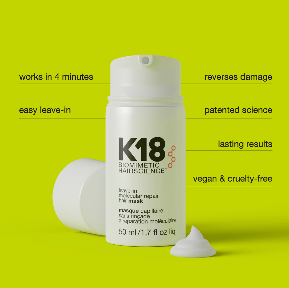 K18 Leave-in moleculair herstellende haarmasker herstelt de keratineketens en versterkt je haar met lichtgewicht hydraterende eigenschappen om het haar te ontwarren en glad en zacht te houden, zonder het te verzwaren.